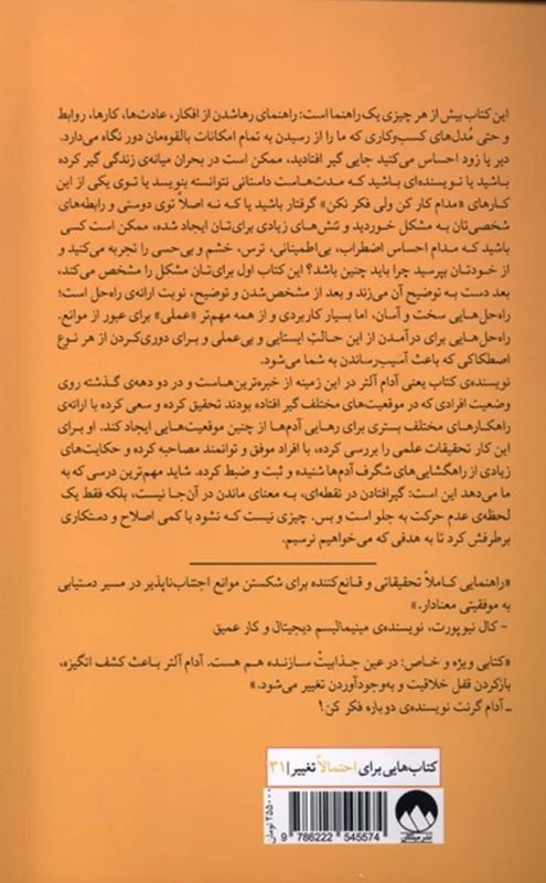 کتاب «آناتومی پیشرفت: راه و رسم خلاصی از درهای بسته»، نوشتهی آدام آلتر، راهنمایی عملی و روشنگر برای غلبهبر موانع ذهنی، خلق ایدههای نو و دستیابی به موفقیتهای چشمگیر در زندگی شخصی و حرفهای است.
