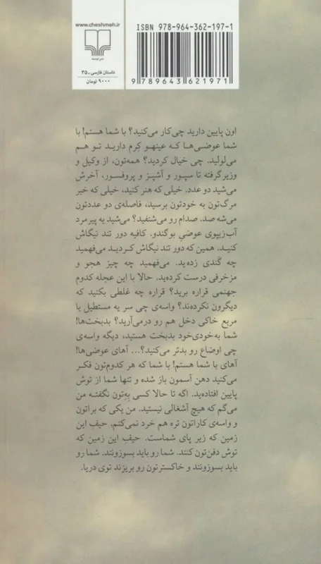 اون پایین دارید چی کار می کنید؟ با شما هستم! با شما عوضی ها که عینهو کرم دارید توی هم می لولید. چی خیال کرده اید؟ همه تون، از وکیل و وزیر گرفته تا سپور و آشپز و پروفسور، آخرش می شید دو عدد. خیلی که هنر کنید، خیلی که خبر مرگتون به خودتون برسید فاصله ی دو عددتون می شه صد.