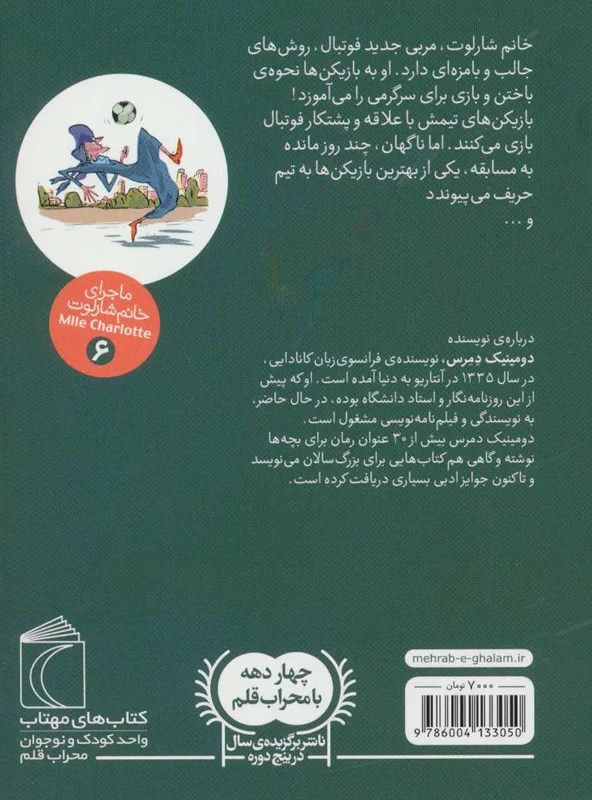 معرفی کتاب بهترین مربی فوتبال اثر دومینیک دمرس خانم شارلوت، مربی جدید فوتبال، روش های جالب و بامزه ای دارد. او به بازیکن ها نحوه ی باختن و بازی برای سرگرمی را می آموزد! بازیکن های تیمش با علاقه و پشتکار فوتبال بازی می کنند. اما ناگهان، چند روز مانده به مسابقه، یکی از بهترین بازیکن ها به تیم حریف می پیوندد و…