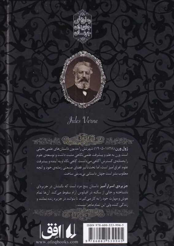 کتاب «جزیره اسرار آمیز» رمانی از ژول ورن است که در سال 1875 منتشر شد. چاپ اصلی ، که توسط هتزل منتشر شده است ، شامل تعدادی تصویر از ژول فرات است. این رمان دنباله ای متقاطع از بیست هزار متر در زیر دریاها (1870) و در جستجوی فرارها (6867-1867) است. اگرچه موضوعات آن بسیار متفاوت از آن کتاب ها است.در طول جنگ داخلی آمریکا ، پنج اسیر جنگی شمالی در جریان محاصره ریچموند ، ویرجینیا ، با ربودن یک بالن ردیابی پر از هیدروژن فرار می کنند. فراری ها عبارتند از سیروس اسمیت ، مهندس راه آهن در ارتش اتحادیه (که در نسخه کینگستون به نام سیروس هاردینگ نامیده می شود). برده سابق و وفادار او نب (مخفف نبوکدنصر) ؛ ملوان (که فقط با نام خانوادگی او خطاب می شود ؛ در ترجمه کینگستون ، او پنکروفت نام دارد) ؛ محافظ و فرزندخوانده او هاربرت براون (در برخی ترجمه ها هربرت نامیده می شود).