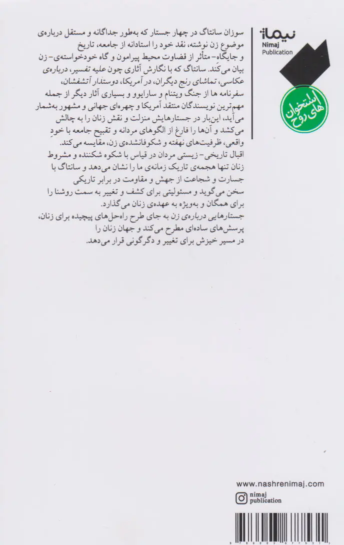 سوزان سانتاگ ازآن دست آدمهاست که هر روشنفکری، ورای زن یا مرد بودن، دوست دارد «او» باشد یا او شود! این مسئله تعدادی کمی از آدمها در طول تاریخ را شامل میشود، درحالیکه این مهم دربارهی احساسی که عموم روشنفکران همعصر سانتاگ و پسازاو داشتهاند صدق میکند؛ سوزان سانتاگ تجلی تمامعیار زندگی روشنفکرانه است؛ او همهی عرصههای نقد هنری و ادبی، از نقد نقاشی، عکس، تئاتر، فیلم، شعر، داستان و ... را به کمال انجام داده، رمان، داستان و نمایشنامه نوشته، فیلم ساخته، جستار و مقالهی فسلفی نوشته و ... به شکل شگفتانگیزی همهی اینها را هم به بهترین شکل انجام داده و ازهمینروی میتوان او را سمبل روشنفکری در جهان مدرن دانست. فارغ از همهی اینها، نوشتههای او دربارهی زنان و فمینیسم هم با ژرفاندیشی و نگاه سراسر روشنگرانه و انتقادیاش، چنان جایگاهی رفیع دارند که سالهاست به الگوهایی درجه یک در نوشتار فمینیستی و زنانهنویسی تیدیل شدهاند. کتاب «جستارهایی دربارهی زن» مجموعهی چهار جستار سوزان سونتاگ است که در دههی هفتاد قرن بیستم نوشته و سرشار از پرسشهایی مهم و اساسیاند که هیچکس پیشازاو به درستی آنها را مطرح نکرده و پیش رو نگذاشته بود. سونتاگ در جستارهایی دربارهی زن، استانداردهای دوگانهی پیرشدن در جوامع انسانی را در قیاس زن و مرد، ماجرای زیبایی و خواست و فهم آن در جوامع مختلف، مسئلهی حضور زنان در جایگاههای اثرگزذار و تصمیمگیریها و ... را با هنرمندی تمام شرح داده و با پرسشهای فراوانی بررسی میکند و چشمها را برابر آنچه وجود داشته، دارد و خواهد داشت، گشوده میکند!