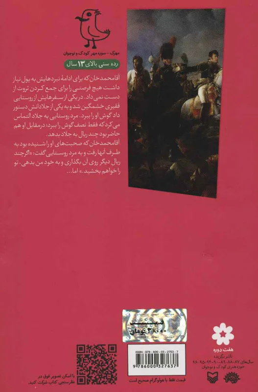 "آقا محمد خان" که برای ادامه نبردهایش به پول نیاز داشت هیچ فرصتی را برای جمع کردن ثروت از دست نمی داد. در یکی از سفرهایش از روستایی فقیری خشمگین شد و به یکی از جلادانش دستور داد گوش او را ببرد. مرد روستایی به جلاد التماس می کرد که فقط نصف گوش را ببرد؛ در مقابل او هم حاضر بود چند ریال به جلاد بدهد. آقا محمدخان که صحبت های او را شنیده بود به طرف آن ها رفت و به مرد روستایی گفت: اگر چند ریال دیگر روی آن ها بگذاری و به خود من بدهی، تو را خواهم بخشید اما...