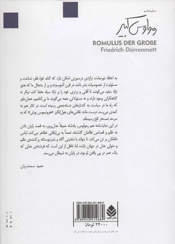 نمایشنامه فریدریش دورنمات رمولوس کبیر انقراض امپراتوری روم غربی را در قرن پنجم نشان میدهد – که در روز (و روز بعد از آن) مارس 476 اتفاق میافتد.ویرانی امپراتوری با آرامش توسط امپراتور رومولوس آگوستولوس انتظار می رود. علیرغم تلاشهای وزیران و درباریانش برای وادار کردن امپراتور به برداشتن گامهای قاطع در برابر خطر فزاینده تهاجم ژرمنها، رومولوس ترجیح میدهد در خانه بماند و جوجههای اهلی را پرورش دهد و در پاسخ به تهدید اقدامی انجام ندهد. سرباز اسپوریوس تیتوس ماما، خون آلود و خسته به اقامتگاه روستایی رومولوس میرسد و شبانه روز سوار میشود تا به امپراتور از سقوط پاویا اطلاع دهد. رومولوس را در نهایت می توان یافت که بر سر فروش نیم تنه برخی از بزرگترین شخصیت های تاریخی رم مبادله می کند.