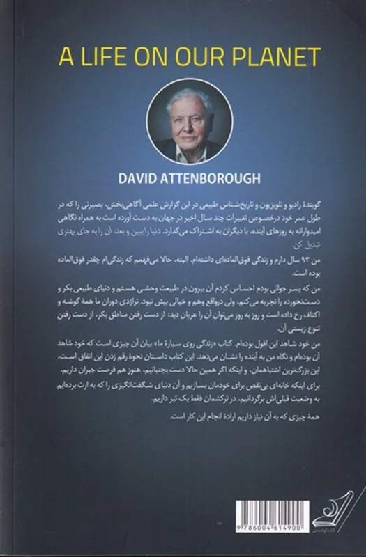 کتاب یک زندگی روی سیاره ما نوشته دیوید اتنبرو می باشد ، مردی که بیش از هر کسی دنیای طبیعی را دیده و این بیانیه و گوشه ای از مشاهداتش است . او اکنون در سن 94 سالگی ازهمه ی قاره های جهان دیدن کرده و حیات وحش سیاره ما را جست وجو کرده و زندگی جهانی متنوع و شگفت انگیز را به شکلی واقعی مستند کرده است . او هم زندگی اش به عنوان طبیعت گرد را منعکس می کند و هم تغییرات مخربی را که شاهد آن بوده است .