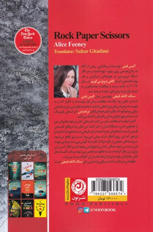 کتاب «سنگ، کاغذ، قیچی» رمانی نوشته «آلیس فینی» است که نخستین بار در سال 2021 به چاپ رسید. «آملیا» و «آدام رایت»، زوجی که در مرکز این داستان قرار دارند، در حال گذراندن آخرهفته خود در ارتفاعات اسکاتلند هستند، با این احتمال که شاید بتوانند ازدواج ده ساله خود را از نابودی نجات دهند. آن ها همسایه ای مرموز و انزواطلب به نام «رابین» دارند که باعث وحشت «آملیا» می شود وقتی او می بیند که «رابین» پشت پنجره خانه ایستاده و به آن ها خیره شده است. داستان خیلی زود پیچ و خم هایی خطرناک به خود می گیرد و روایت هر کدام از این سه شخصیت، «جعبه پاندروایی» را می گشاید که سرشار از اسرار، دروغ ها و خیانت های ریز و درشت است.