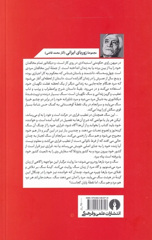 این کتاب در سال ۱۳۵۶ توسط محمد قاضی ترجمه و منتشر شد. در میهن راوی حکومتی استبدادی در روی کار است، و دیکتاتور تمام مخالفان خود را یا از بین برده یا به زندان انداخته است. از جملهی این مخالفان مردی چهل و سه ساله دانشمند و باستان شناس که محکوم به کار اجباری بوده و پنج سال از عمرش را در زندان گذارنده است. داستان از لحظهای آغاز می شود که مرد هنگام جا به جایی به زندانی دیگر از یک لحظه غفلت نگهبان خود استفاده می کند و در می رود، بقیهی داستان شرح پراضطراب و پر تب و تاب تعقیب و گریز زندانی و سگ نگهبان است.