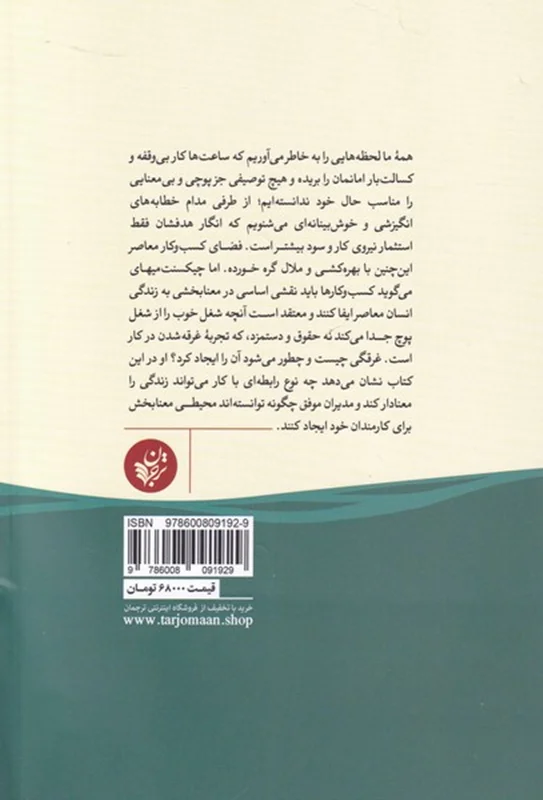 از دیگر موضوعاتی که در این کتاب مورد توجه قرار گرفته، ایجاد معنا در کسب و کار است. چیکسنت میهایی تأکید دارد که هر کسب و کار باید به دنبال ایجاد ارزشهای واقعی برای مشتریان، کارکنان و جامعه باشد. او با مطرح کردن مثالهای متعدد، نشان میدهد که چگونه میتوان با توجه به ارزشها و اخلاقیات، کسب و کارهای موفق و معناداری ایجاد کرد. در نهایت، «شغل خوب، شغل پوچ» یک راهنما برای همهی افرادی است که در دنیای کسب و کار فعالیت میکنند - از مدیران برتر تا کارکنان جوان - و مایل به ایجاد تغییر مثبت در محیط کاری خود هستند. این کتاب نه تنها به تبیین مفهوم اوج در کسب و کار میپردازد، بلکه به چالش کشیدن مفاهیم سنتی کسب و کار و معرفی راههای جدید برای ایجاد معنا و مقام در کسب و کار میپردازد.