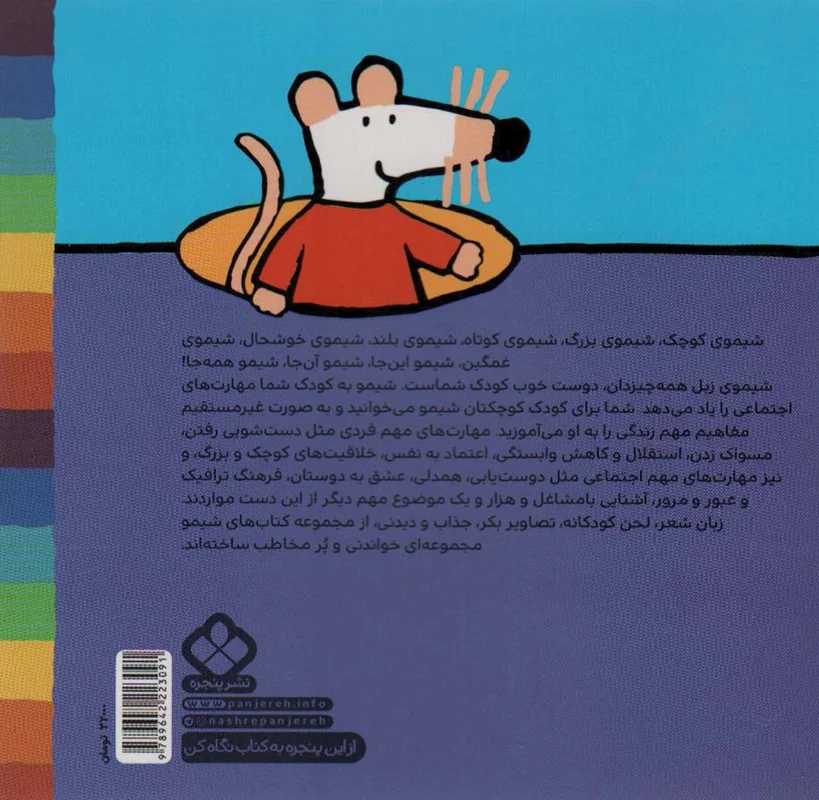 شیموی کوچک،شیموی بزرگ،شیموی کوتاه،شیموی بلند،شیموی خوشحال،شیموی غمگین،شیمو این جا،شیمو آن جا،شیمو همه جا،شیموی زبل همه چیز دان،دوست خوب کودک شماست.شیمو به کودک شما مهارت های اجتماعی را یاد می دهد.شما برای کودک کوچکتان شیمو می خوانید و به صورت غیر مستقیم مفاهیم مهم زندگی را به او می آموزید.مهارت های مهم فردی مثل دست شویی رفتن ،مسواک زدن،استقلال و کاهش وابستگی،اعتماد به نفس،خلاقیتهای کوچک و بزرگ،و نیز مهارت های مهم اجتماعی مثل دوست یابی،همدلی،عشق به دوستان،فرهنگ ترافیک و عبور و مرور ،آشنایی با مشاغل و هزار و یک موضوع مهم دیگر از این دست مواردند.زبان شعر،لحن کودکانه ،تصاویر بکر،جذاب و دیدنی،از مجموعه کتاب های شیمو مجموعه ای خواندنی و پرمخاطب ساخته اند .