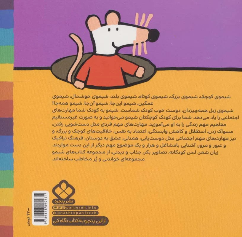 شیموی کوچک،شیموی بزرگ،شیموی کوتاه،شیموی بلند،شیموی خوشحال،شیموی غمگین،شیمو این جا،شیمو آن جا،شیمو همه جا،شیموی زبل همه چیز دان،دوست خوب کودک شماست.شیمو به کودک شما مهارت های اجتماعی را یاد می دهد.شما برای کودک کوچکتان شیمو می خوانید و به صورت غیر مستقیم مفاهیم مهم زندگی را به او می آموزید.مهارت های مهم فردی مثل دست شویی رفتن ،مسواک زدن،استقلال و کاهش وابستگی،اعتماد به نفس،خلاقیتهای کوچک و بزرگ،و نیز مهارت های مهم اجتماعی مثل دوست یابی،همدلی،عشق به دوستان،فرهنگ ترافیک و عبور و مرور ،آشنایی با مشاغل و هزار و یک موضوع مهم دیگر از این دست مواردند.زبان شعر،لحن کودکانه ،تصاویر بکر،جذاب و دیدنی،از مجموعه کتاب های شیمو مجموعه ای خواندنی و پرمخاطب ساخته اند .