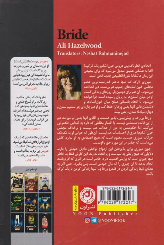 "عروس" رمانی پرنشاط و عاطفی است که طرفداران رمانهای عاشقانه معاصر را مسحور خواهد کرد. قلم جذاب علی هیزل وود، شخصیتهای باورپذیر و مهارت او در ایجاد تعادل میان طنز و لحظات تأثیرگذار، این کتاب را به اثری ضروری تبدیل کرده است. چه تحت تأثیر شیمی میان شخصیتها قرار بگیرید یا به جستجوی عمیقتر در موضوعات عشق و هویت علاقهمند باشید، "عروس" داستانی است که مدتها در ذهن باقی خواهد ماند.