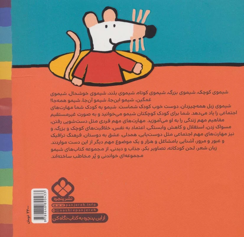 شیموی کوچک،شیموی بزرگ،شیموی کوتاه،شیموی بلند،شیموی خوشحال،شیموی غمگین،شیمو این جا،شیمو آن جا،شیمو همه جا،شیموی زبل همه چیز دان،دوست خوب کودک شماست.شیمو به کودک شما مهارت های اجتماعی را یاد می دهد.شما برای کودک کوچکتان شیمو می خوانید و به صورت غیر مستقیم مفاهیم مهم زندگی را به او می آموزید.مهارت های مهم فردی مثل دست شویی رفتن ،مسواک زدن،استقلال و کاهش وابستگی،اعتماد به نفس،خلاقیتهای کوچک و بزرگ،و نیز مهارت های مهم اجتماعی مثل دوست یابی،همدلی،عشق به دوستان،فرهنگ ترافیک و عبور و مرور ،آشنایی با مشاغل و هزار و یک موضوع مهم دیگر از این دست مواردند.زبان شعر،لحن کودکانه ،تصاویر بکر،جذاب و دیدنی،از مجموعه کتاب های شیمو مجموعه ای خواندنی و پرمخاطب ساخته اند .