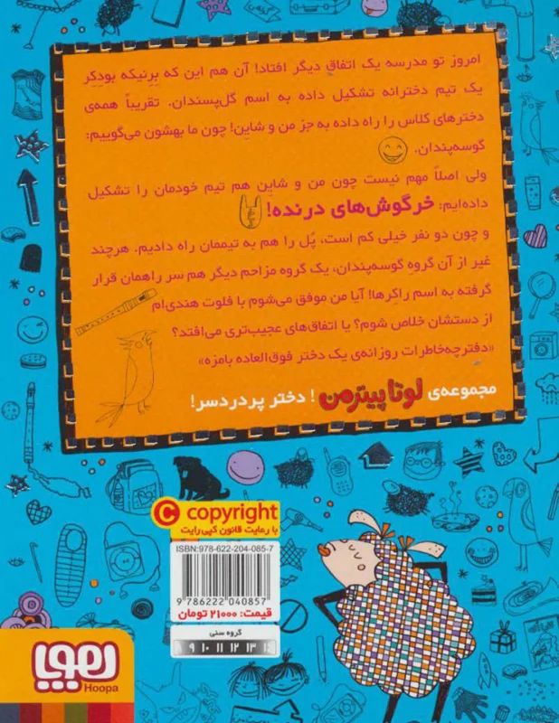 ماجراهای "لوتا پیترمن" آن قدر زیاد و بامزه اند که نمی توان از هیچ کدامشان گذشت! در کتاب دوم از این مجموعه که "گوسفند اینجا، گوسفند آنجا، گوسفند همه جا" نام گرفته، شاهد اتفاقات عجیب و جالب توجهی هستیم که هر کدام به شدت جذاب و خنده دار هستند؛ ماجراهایی شامل: جریان هانیبال که یک طوطی خاص است، برنیکه ی خودپسند و جشن تولدش، فلوت نوازی برای ارکستر مدرسه و تیم دخترانه ی پرجمعیتی که برنیکه تشکیل داده و تقریبا همه ی دختران کلاس به عضویت آن در آمده اند و حالا یک تیم سه نفره، عزمشان را جزم کرده اند که سر از کار برنیکه و تیم دخترانه ی او در بیاورند.