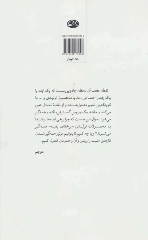 کتاب نقطه ی عطف آن لحظه جادویی ای است که یک ایده ، گرایش یا رفتار اجتماعی از آستانه اش عبور می کند ، پیشنهاد هایی ارائه می کند و مانند یک آتش پخش می شود. درست همانطور که یک فرد بیمار به تنهایی می تواند یک آنفولانزای همه گیر را شروع کند ، دقیقا همینطور یک فشار کوچک اما کاملا هدفمند می تواند باعث ایجاد روند مد ، محبوبیت محصول جدید یا افت میزان جرم شود. این کتاب پرفروش بسیار مشهور ، که در آن مالکوم گلدول به درخشانی به بررسی پدیده نقطه اوج می پردازد ، در حال حاضر طرز تفکر مردم در سراسر جهان را در مورد فروش محصولات و انتشار ایده ها تغییر می دهد.