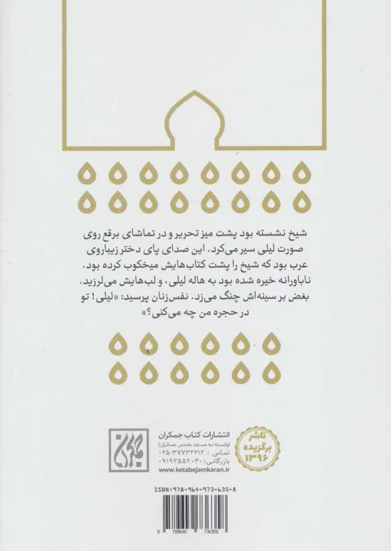 شیخ نشسته بود پشت میز تحریر و در تماشای برقع روی صورت لیلی سیر می کرد. این صدای پای دختر زیبا روی عرب بود که شیخ را پشت کتابهایش میخکوب کرده بود. ناباورانه خیره شده بود به هاله ی لیلی ، و لب هایش می لرزید. بغض بر سینه اش چنگ می زد. نفس زنان پرسید: "لیلی! تو در حجره من چه می کنی؟"