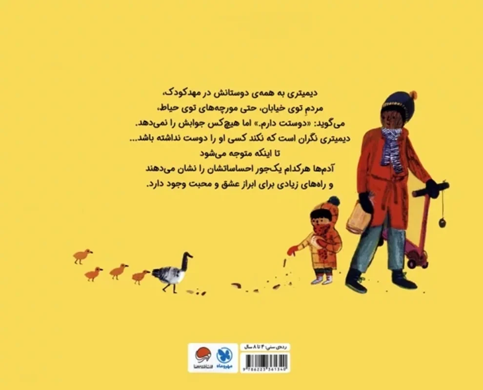 کتاب «پسری که همه را دوست داشت» توسط جین پورتر نوشته شده که جزو نویسندگان پر فروش نیویورک تایمز است. این کتاب، قصهی پسرکی به نام دیمیتری را روایت میکند که مهربان است و دوست داشتنش را به همه ابراز میکند. دیمیتری به هر کسی که سر راهش قرار میگیرد، یادآوری میکند که دوستش دارد. قصهی او از مهد کودک آغاز شده و او به همکلاسیهایش میگوید که دوستشان دارد. دیمیتری حتی از مورچهای که روی زمین راه میرود نیز غافل نشده و دوست داشتنش را به او هم ابراز میکند اما این همهی ماجرا نیست. دیمیتری نگران این است که مبادا کسی او را دوست نداشته باشد، چرا که به هنگام گفتن این جمله، پاسخی از دور و بریهایش دریافت نمیکند.