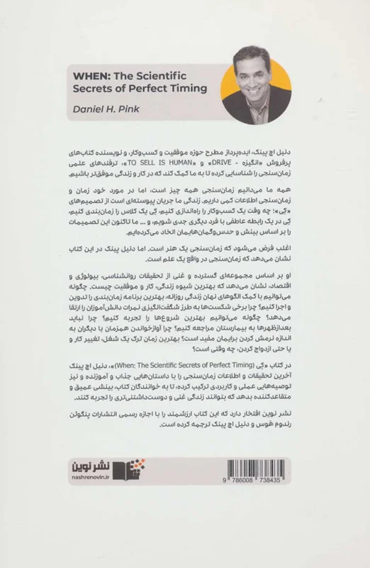 دنیل اچ پینک (DANIEL H. PINK)، ایدهپرداز مطرح حوزه موفقیت و کسبوکار، و نویسنده کتابهای پرفروش «انگیزه – DRIVE» و «TO SELL IS HUMAN»، ترفندهای علمی زمانسنجی را شناسایی کرده تا به ما کمک کند که در کار و زندگی موفقتر باشیم.