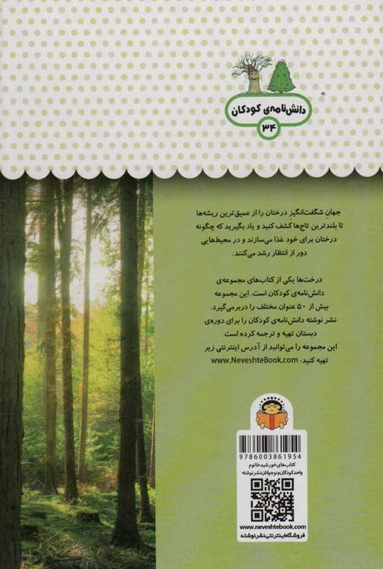 این کتاب، جلد سی و چهارم از مجموعه «دانشنامه کودکان» است. در این کتاب، کودکان پاسخ پرسشهای خود را درباره رشد انواع درخت، بهدست میآورند. چگونه درختان برای خود غذا میسازند و در محیطهای دور از انتظار رشد میکنند؟ نحوه حفاظت از درختان چگونه است؟ درختان چه کاربردهایی برای زندگی بشر دارند؟ و...، نمونههایی از پرسشهای کتاب هستند. در پایان کتاب، فرهنگ لغت «درختان» شامل معانی لغاتی که در کتاب استفاده شده و ممکن است کودکان با آنها آشنایی نداشته باشند، ارائه میشود.